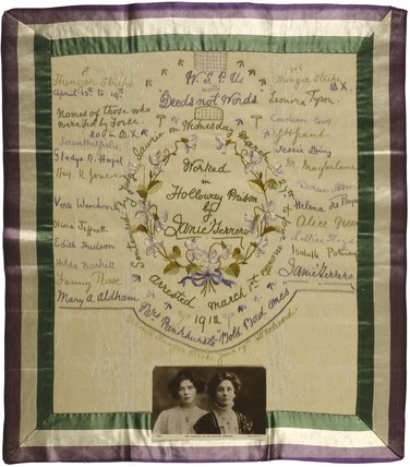 The WSPU Holloway prisoners banner, 1910, from the Museum of London