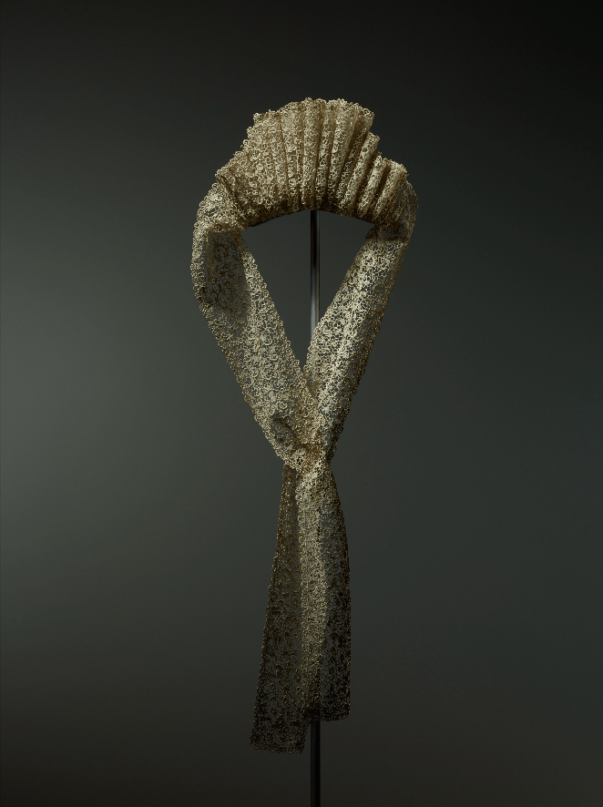 Point de France needle-lace frelange with lappets, Orne, France, ca. 1695. Linen. Textilmuseum St. Gallen, Acquired from the Estate of John Jacoby, 1954, 01246. Photograph: Michael Rast.