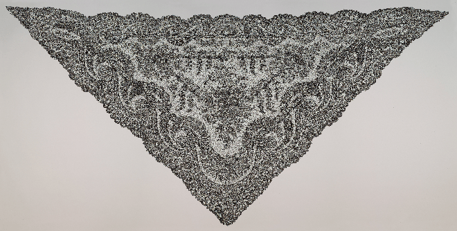 Handmade Chantilly bobbin-lace shawl, France or Belgium, ca. 1860. Silk. Textilmuseum St. Gallen, Acquired from the Estate of John Jacoby, 1954, 00480. Photograph: Michael Rast.