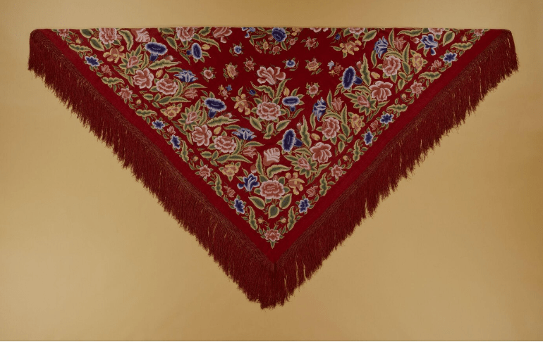 Long and short stitches on Chinese shawl, mid-19th century, Victoria and Albert Museum