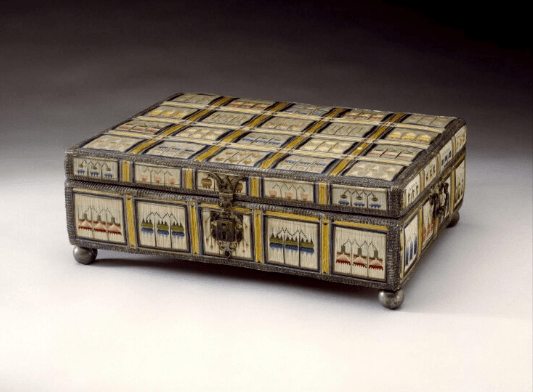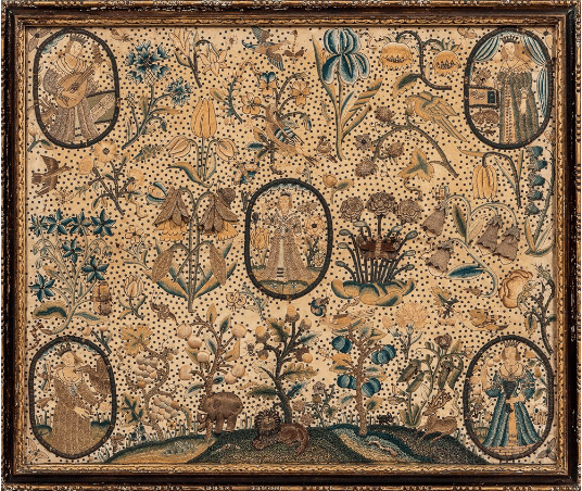 Rebecca ScottElizabeth Hall, casket, 1683, Witney AntiquesElizabeth Hall, bellows purse, 1680s, Witney AntiquesElizabeth Hall, trinket box, 1680s, Witney AntiquesMartha Edlin, bellows purse, 1670-1680, Victoria and Albert MuseumMartha Edlin, trinket box, 1670s, Victoria and Albert MuseumHannah Downes, casket, 1683, Victoria and Albert MuseumHannah Downes, bellows purse, 1680s, Victoria and Albert MuseumElizabeth Hall, garters, 1680s, Witney AntiquesElizabeth Hall, embroidered nutmeg, 1680s, Witney AntiquesEmbroidered picture with the Five Senses, circa 1650, private collection