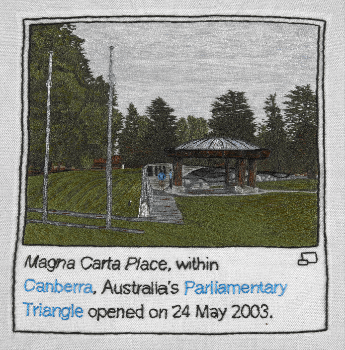 Detail from Cornelia Parker’s Magna Carta (An Embroidery), a 13m long work replicating the entire Wikipedia article on the Magna Carta.