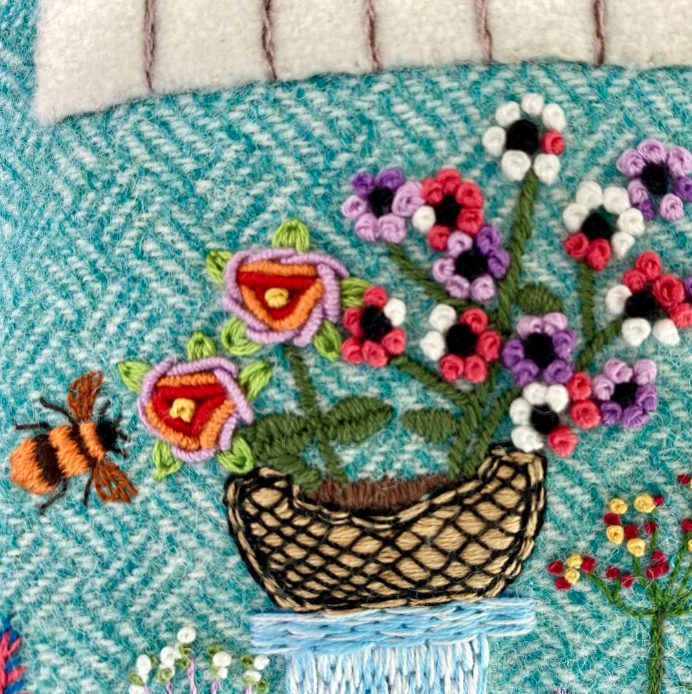 The Cottage Cushion, an in-house embroidery design that give stitchers the freedom to choose their own colours, stitch techniques and details.