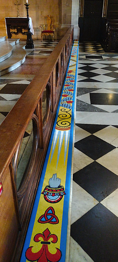 A 38ft long altar kneeler commissioned by Holy Trinity Sloane Square (also known as the Cathedral of Arts & Crafts), designed by artist Cressida Bell.