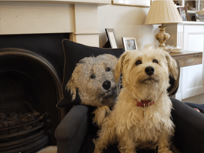 A Pet Cushion commission – Fine Cell Work can translate a beloved pet (like Rollo, pictured) into a unique needlepoint work of art.