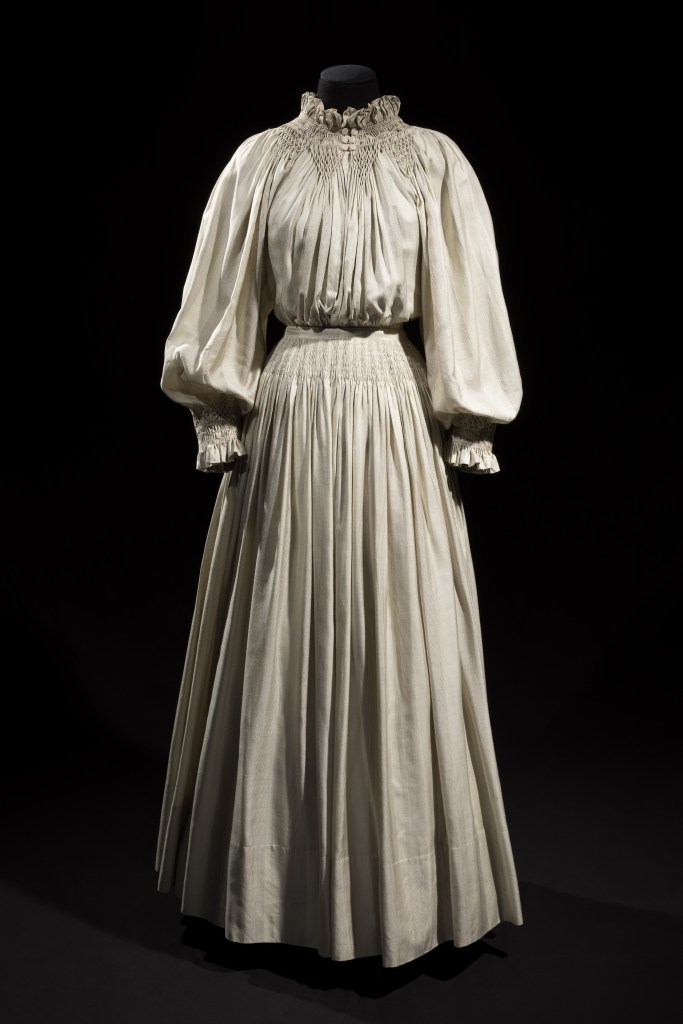 Silk twill hand smocked dress, circa 1887, possibly United Kingdom ©The Museum at FIT