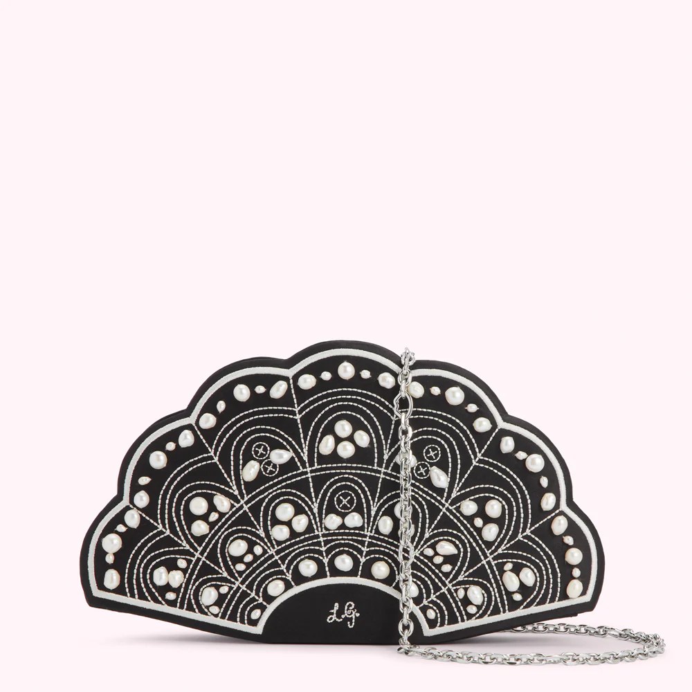 Lulu Guinness, Black Collectible Fan Clutch Bag