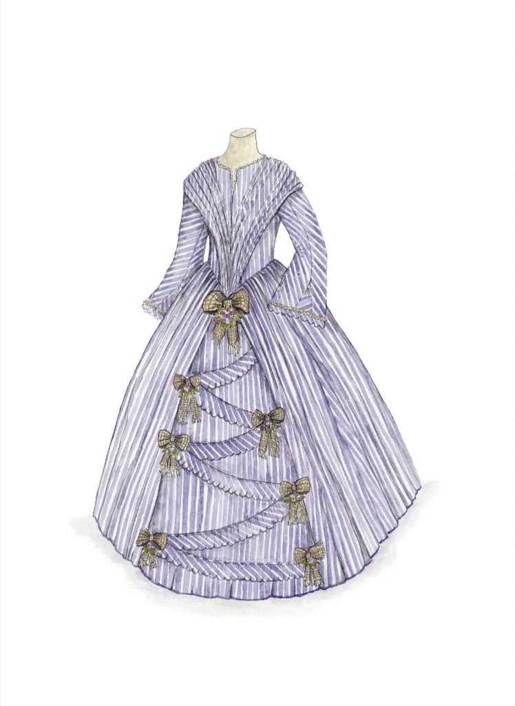 Eleanor Houghton, Charlotte Brontë’s Blue-and-Cream, Striped Silk Evening Gown, early 1850s, D10, Pen, ink and Watercolour, 2022