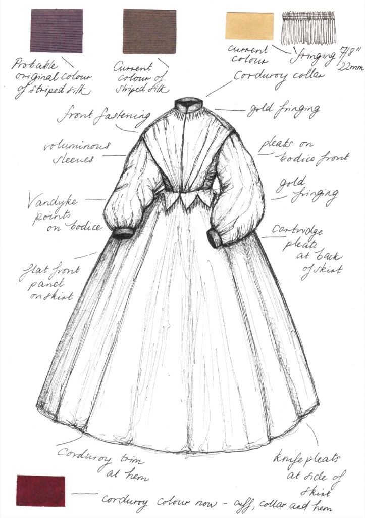 Eleanor Houghton, Charlotte Brontë’s ‘Going Away Dress’, D74, Pen, ink and Watercolour, 2025