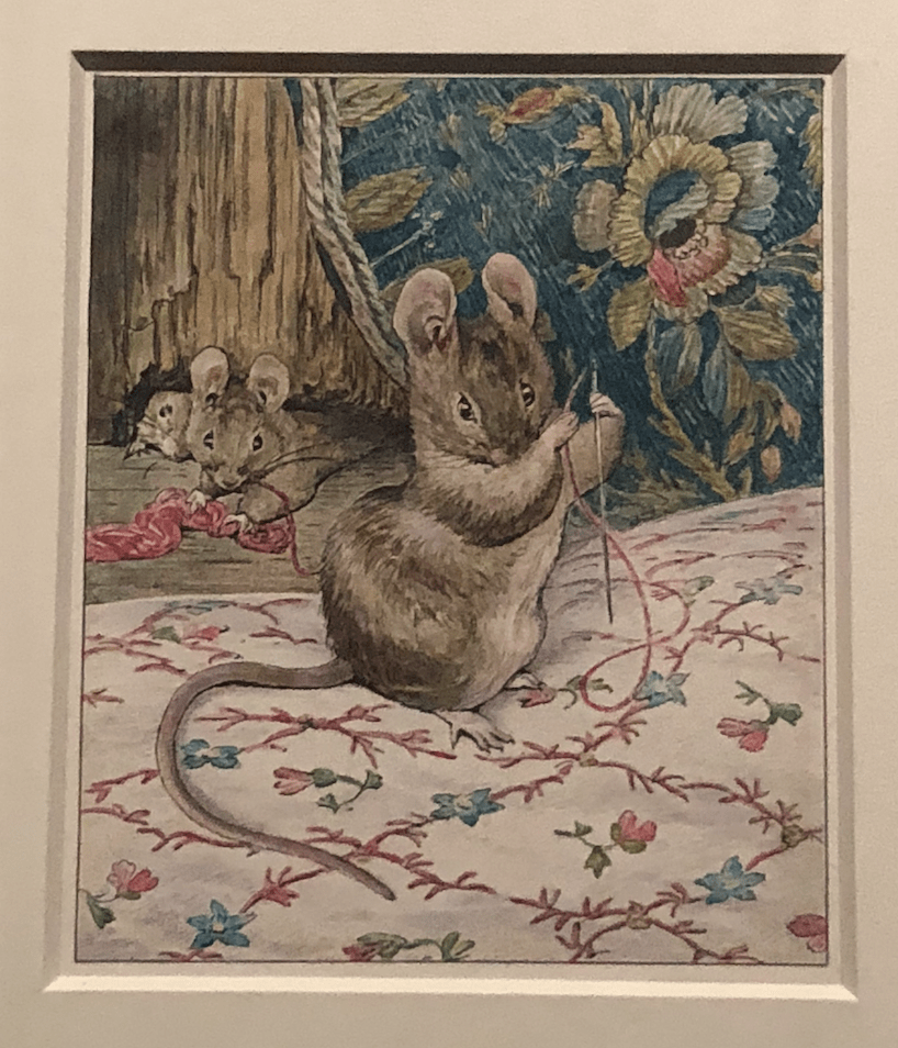 Illustration from The Tailor of Gloucester, photograph taken at the V&A by Isabella Rosner in February 2022