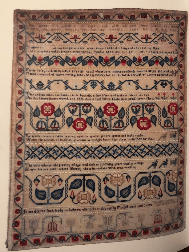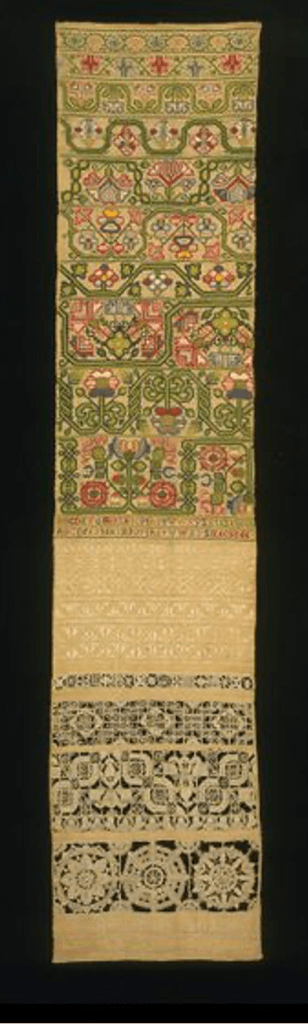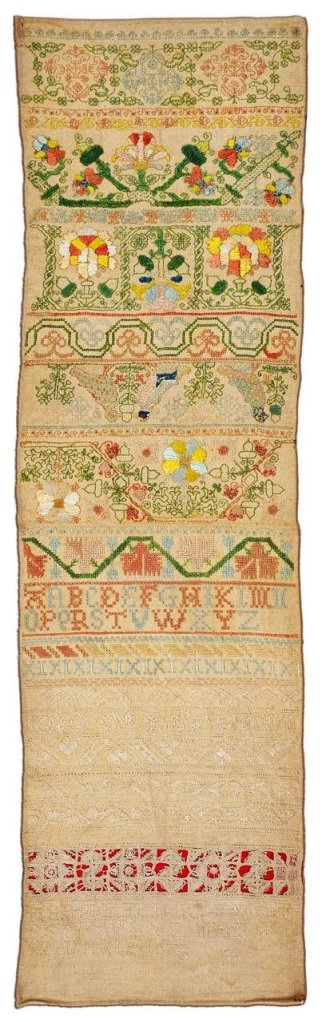 Sampler by Mary Wilson, 1695, Indianapolis Museum of Art
