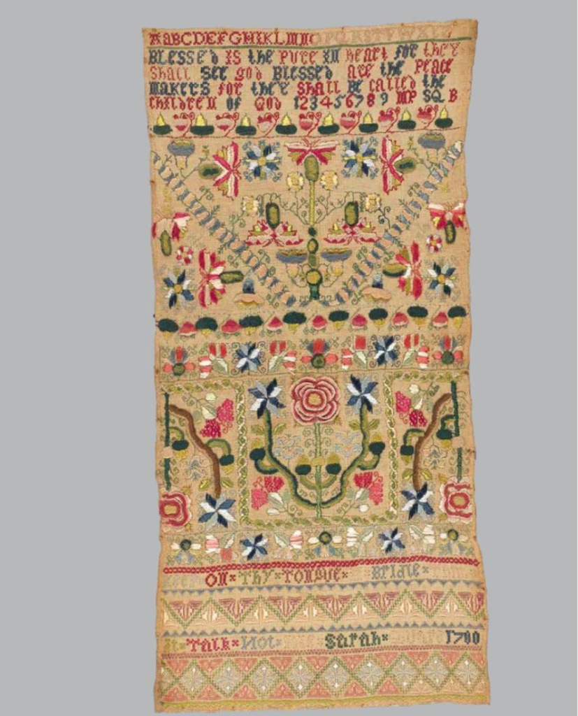 Sampler by Sarah Quare, 1700, John H. Bryan collection