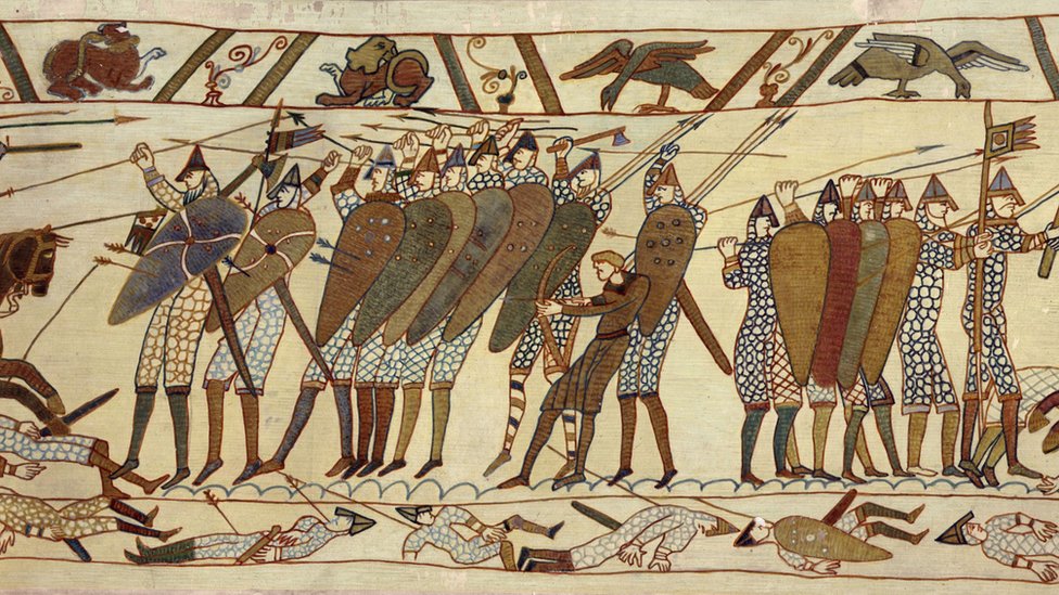 Detail of the Bayeux Tapestry, c. 11th century, from the Musée de la Tapisserie de Bayeux