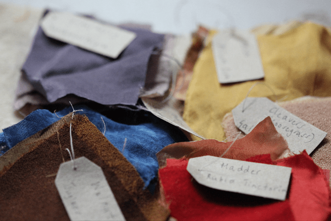 Fabrics dyed using plants grown and harvested as part of the “Fabric of Bradford” project, 2012-5