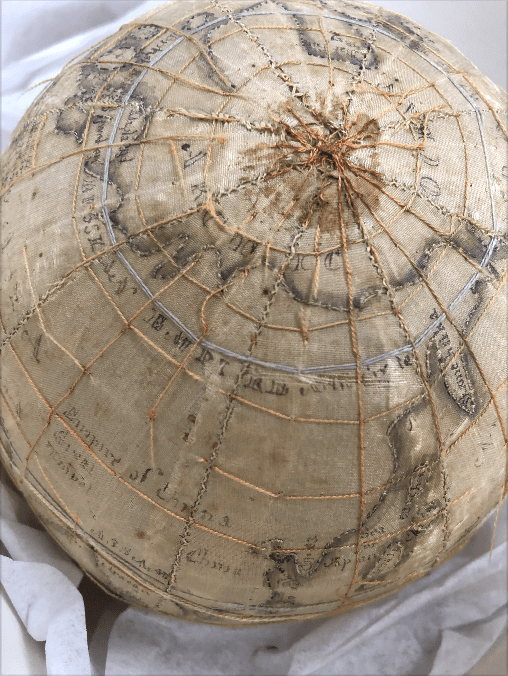 Embroidered globe, Hannah E. Deacon, c. 1815-7, Westtown School, West Chester, Pennsylvania, Monmouth County Historical Association